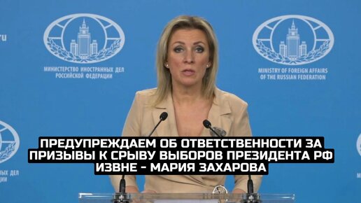 Предупреждаем об ответственности за призывы к срыву выборов президента РФ извне - Мария Захарова