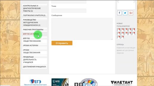 Меню на сайте педагога