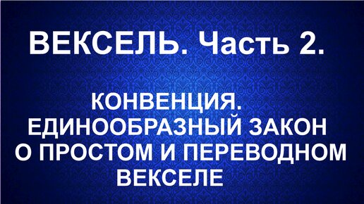 Вексель. Конвенция. Единообразный закон о переводном и простом векселе. Часть 2.
