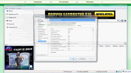 Удалить рекламу в программе торрент