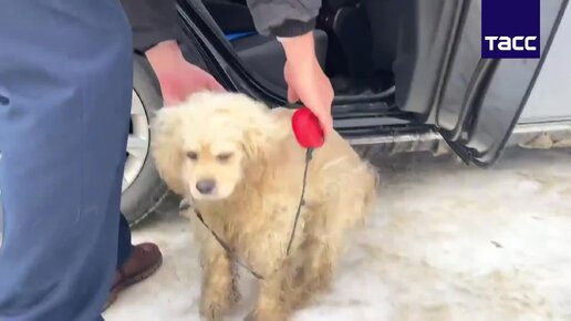 Спасенного из квартиры спаниеля отвезли на обследование в ветклинику