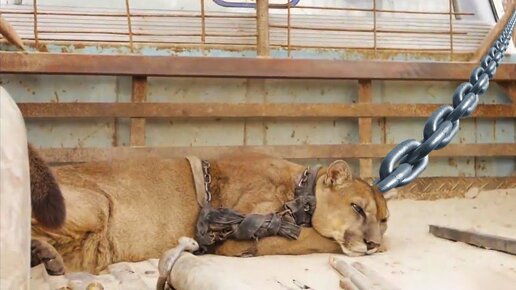 Лев был скован цепями 20 лет, посмотрите на его реакцию, когда его освободили.