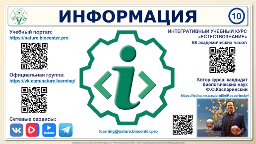 Информация. Тема 10 интегративного курса “Естествознание” к.б.н. Феликса Каспаринского. Тематический Модуль 2 “Мироустройство”