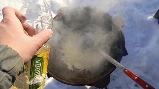 Картошка с луком в казане.