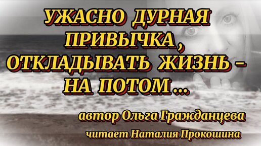Обязательно к прослушиванию. "УЖАСНО ДУРНАЯ ПРИВЫЧКА ОТКЛАДЫВАТЬ ЖИЗНЬ "НА ПОТОМ". Автор Ольга Гражданцева. Читает Наталия Прокошина