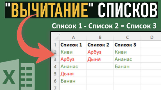 Вычитание списков в Excel ➤ Как удалить одинаковые значения
