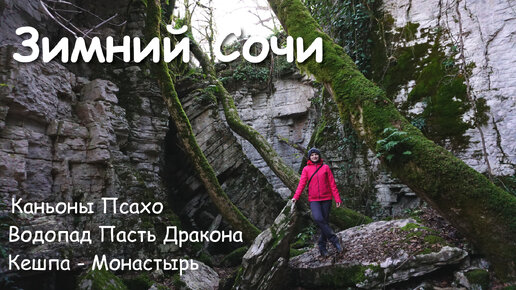 Зимний Сочи. Дорога Кешпа - Монастырь. Водопад пасть дракона. Мокрый и сухой каньон Псахо