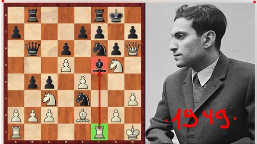 Юный Михаил Таль каскадирует жертвами, фонтанируя искрометной игрой против Зиберта - в финале шахматной партии-феерии ставит мат (Рига, 1949