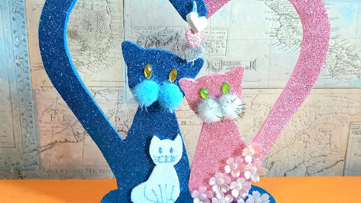 Интерьерное украшение влюбленные котики из фоамирана своими руками, подарок на 14 февраля или на день свадьбы, поделки из фоамирана