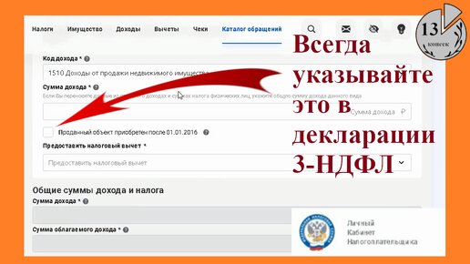 Как онлайн заполнить налоговую декларацию 3-НДФЛ за 2023 год по продаже квартиры. Личный кабинет налогоплательщика 2024 года.