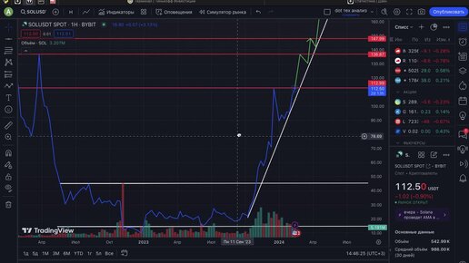 Технический анализ. Криптовалюта SOL/USDT. В 2024 году эта монета СДЕЛАЕТ Х2!?
