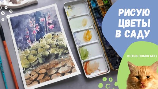 Как нарисовать цветы в саду. Открытка акварелью на обычной бумаге для рисования 💮