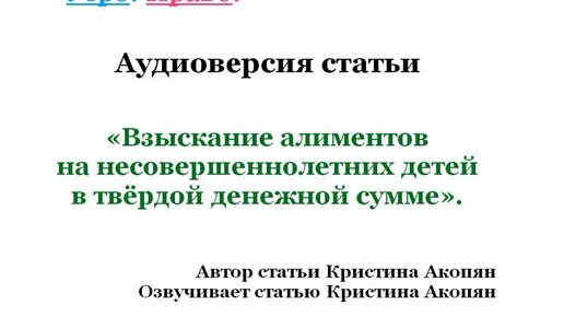Взыскание алиментов на несовершеннолетних детей в твёрдой денежной сумме