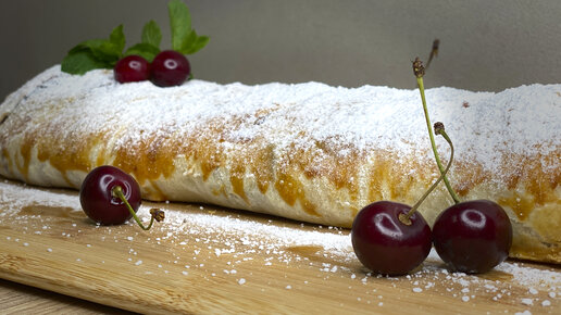 Штрудель с вишней из готового слоеного теста | Простой рецепт вишневого штруделя