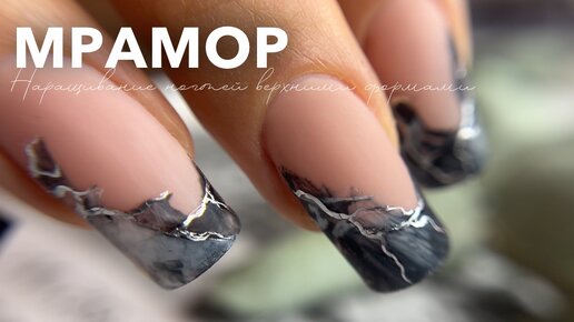 ТЕКСТУРНЫЙ МРАМОР | Наращивание верхними формами | Дизайн ногтей
