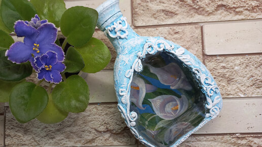 Декор бутылки салфеткой.