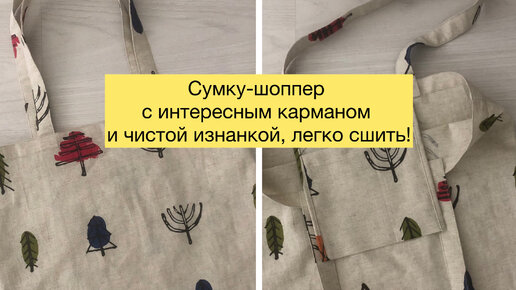 Сумка -шоппер с интересным карманом и чистой изнанкой, легко сшить! Идеальна для подарка на любой праздник. #шьюсама #сумка #рукоделие