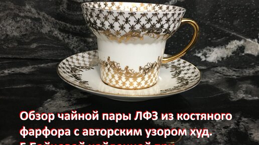 Обзор чайной пары ЛФЗ из костяного фарфора с авторским узором худ. Е.Бойцовой найденной при расхламлении квартиры