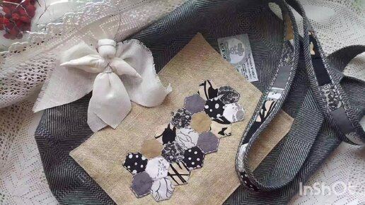 Сумка "Соты", лоскутный льняной шоппер с 3 карманами. Все оттенки зимнего леса и мечты о летнем дожде. Мастерская "Кармашек счастья"