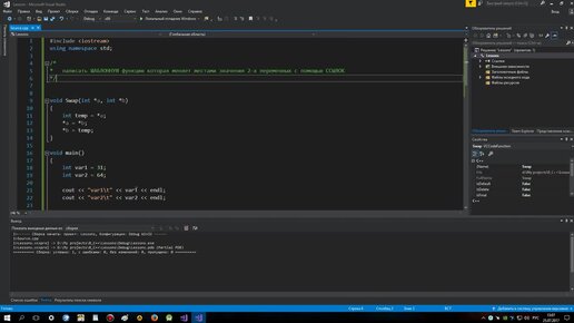 Шаблонная функция. Меняет местами значения переменных с помощью ссылок. c++ для начинающих. Дз#10