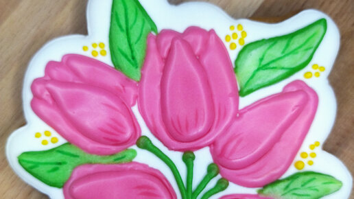 Букет объёмных тюльпанов на прянике. Как нарисовать?