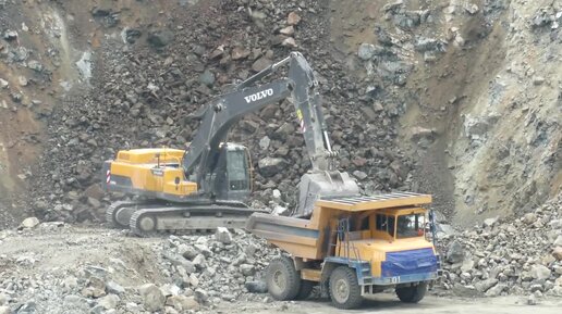 Обвал в карьере, Экскаватор Volvo EC480 и БЕЛАЗ-7540