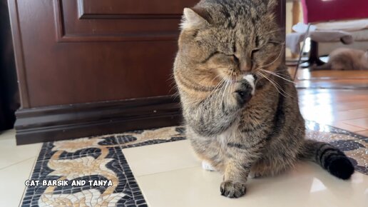 ✨ Барсик вкусно поел и умывается..