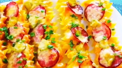 Макароны на шпажках с колбасой и сыром 🧀, запечённые в духовке