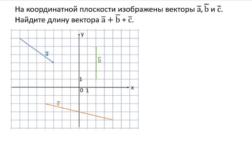 На координатной плоскости изображены векторы а, b и с. Найдите длину вектора а+b+c. Графическое решение