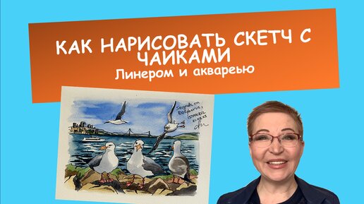 Как нарисовать скетч с чайками линером и акварельными красками #рисуем для души