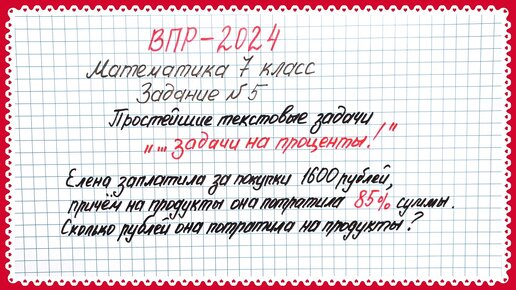 ВПР-2024. Математика 7 класс. Задание №5. Простейшие текстовые задачи. Проценты