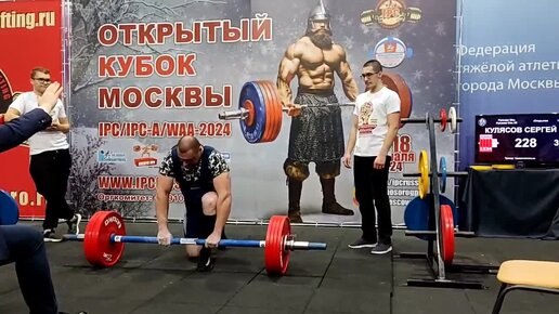 Сергей Кулясов, тяга Русской Оси, 50 мм. СИЛАРУКОВ - 228 кг., новый мировой рекорд WAA на Кубке Москвы IPC/IPC-A/WAA