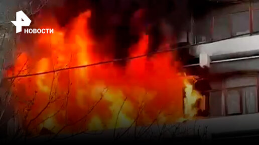 Языки пламени вырываются из многоэтажки в Северном Чертанове