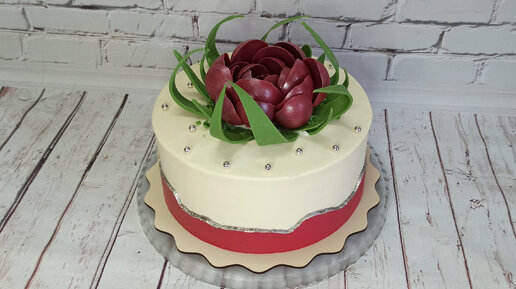 Украшение торта 🎂бортик из крема и импровизированные листики из шоколада🎂