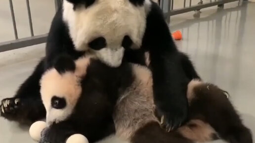 «Покусончики» мимимишной семейки панд - это нечто невероятное! Мамочка все пытается отвлечь Катюшку от игры с гантелькой) Не тут-то было))