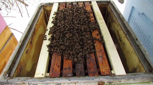 февраль на пасеке - зимовка на воле в улье ППУ на узковысоком гнезде, рамка Рут