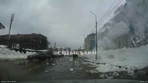 Россиянина чуть не придавило огромной лавиной с крыши