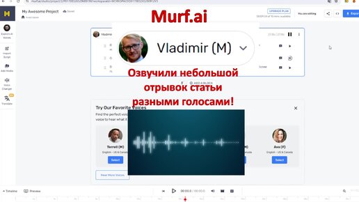 Murf.ai - нейросеть для работы с аудио контентом.
