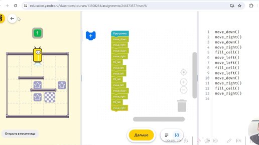 Начинаем с 5 классом программировать. Линейные алгоритмы с роботом Blocky: простые задания с небольшими комментариями. Яндекс-учебник Python