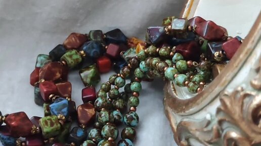 Красивые Чехословацкие бусы "Шотландский агат". Крапчатое разноцветье