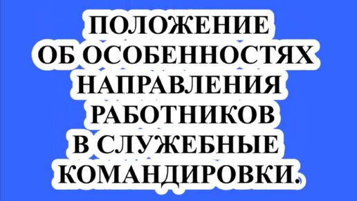 ПОЛОЖЕНИЕ ОБ ОСОБЕННОСТЯХ НАПРАВЛЕНИЯ РАБОТНИКОВ В СЛУЖЕБНЫЕ КОМАНДИРОВКИ.