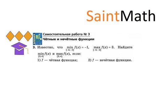 *Известно, что minf(x)=-1 на [-4;-2], maxf(x)=3 на [-4;-2]. Найдите minf(x) на [2;4], maxf(x) на [2;4], если 1) f-четная ; 2) f-нечетная