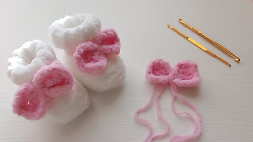 Бантики из плюшевой пряжи для пинеток крючком всего за 5 минут😍