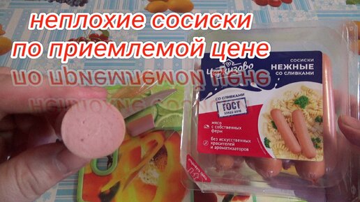 пробую сосиски нежные со сливками Черкизово 109 рублей 400 грамм,мясо с собственных ферм,изделие колбасное мясное