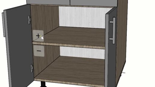 Кухонный шкаф с выдвижными ящиками и распашными фасадами для проектирования корпусной мебели в программе SketchUp