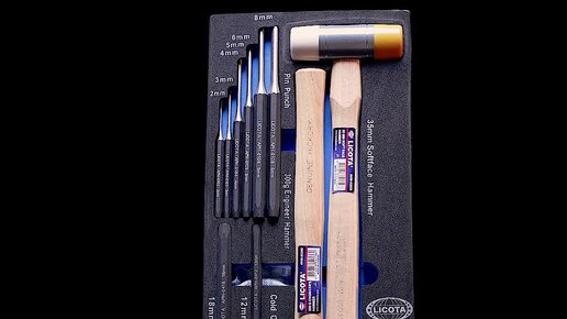 Набор молотков и ударно-режущего инструмента ACK-E38303 Licota. 10 предметов в ложементе EVA