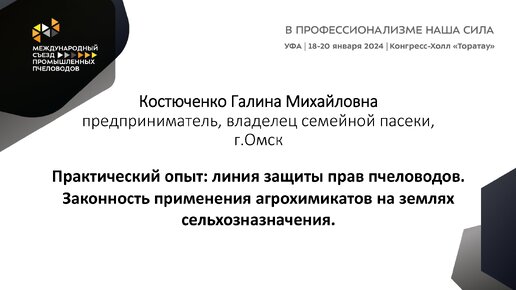 Выступление Г.М. Костюченко на съезде Союза промышленных пчеловодов России. Уфа, январь 2024