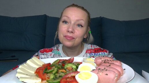 Мукбанг сардельки с сыром, салатик овощной, яйца отварные! Почти ПП.Еда.