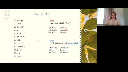 Продвинутый шведский. Упражнения на presens particip. Del 1.