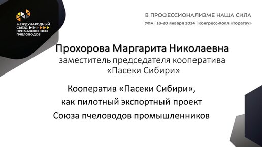Выступление М.Н. Прохоровой (кооператив "Пасеки Сибири") на съезде Союза промышленных пчеловодов России. Уфа, январь 2024
